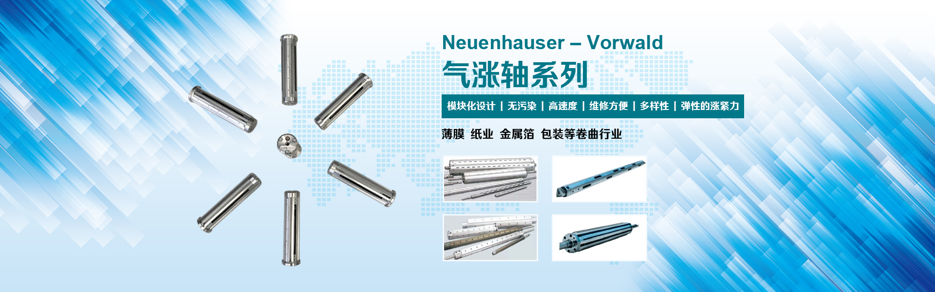 VORWALD 富得涨紧设备、气涨轴、机械涨轴、滑差轴、刀轴、夹头、拔轴器。